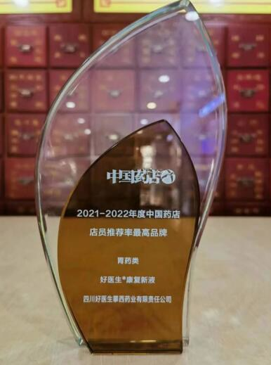 • 好醫生®康復新液榮獲“中國藥店店員推薦率最高品牌(胃藥類)”